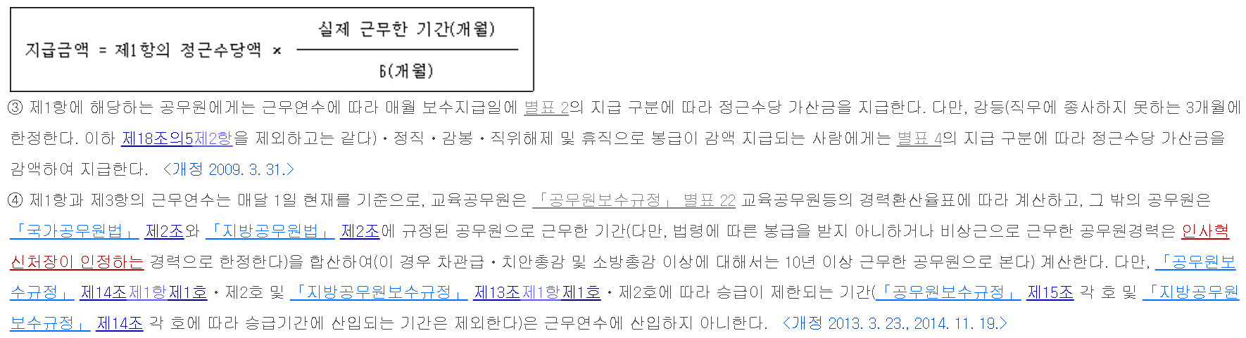 공무원 정근수당 계산법