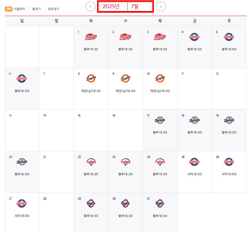 | 7/22(화)~7/24(목) | LG 트윈스 | 18:30 |