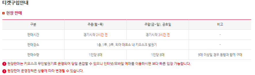 - 선예매(멤버십 회원): 경기 1주일 전 오전 10시