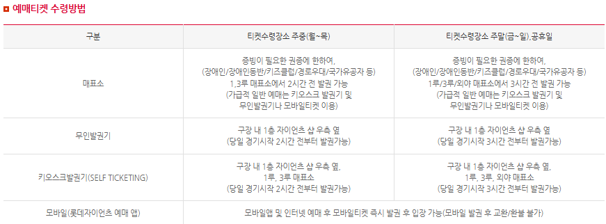 - 예매는 롯데자이언츠 공식 홈페이지 및 인터파크 등 예매 플랫폼 통해 진행