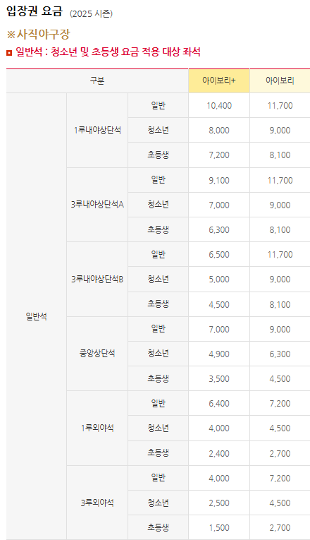 - 외야 일반석: 3,000~5,000원 (초등 할인 포함 시 저렴)